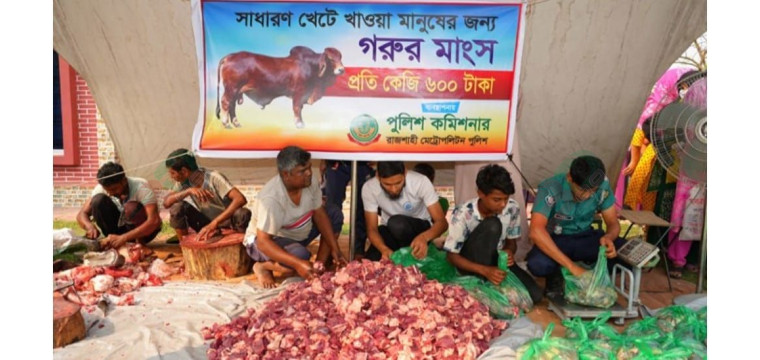 চলতি রমজান মাসে খেটে খাওয়া মানুষের কাছে সরকারের বেঁধে দেওয়া ৬০০ টাকা কেজি দরে গরুর মাংস বিক্রি করছে রাজশাহী মেট্রোপলিটন পুলিশ (আরএমপি)।