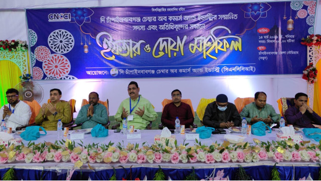 দি চাঁপাইনবাবগঞ্জ চেম্বার অব কমার্স এন্ড ইন্ডাস্ট্রির সম্মানিত সদস্য ও অতিথিবৃন্দের সম্মানে ইফতার ও দোয়া মাহফিল অনুষ্ঠিত হয়েছে। অনুষ্ঠানে সভাপতিত্ব করেন দি চাঁপাইনবাবগঞ্জ চেম্বার অব কমার্স এন্ড ইন্ডাস্ট্রির সভাপতি আব্দুল ওয়াহেদ। অনুষ্ঠানে প্রধান অতিথি হিসেবে উপস্থিত ছিলেন রাজশাহীতে নিযুক্ত ভারতের সহকারী হাইকমিশনার মনোজ কুমার। বিশেষ অতিথি হিসেবে উপস্থিত ছিলেন চাঁপাইনবাবগঞ্জ জেলা প্রশাসক (ভারপ্রাপ্ত) উজ্জ্বল কুমার ঘোষ, জেলা প্রশাসক (সার্বিক) নাকিব হাসান তরফদার, সদর উপজেলা নির্বাহী কর্মকর্তা মারুফ আফজাল রাজন, জেলা প্রশাসক (রাজস্ব) ফয়সাল রায়হান এবং চাঁপাইনবাবগঞ্জ মহানন্দা ব্যাটালিয়ন-৫৯ বিজিবির অধিনায়ক লেফটেন্যান্ট কর্নেল গোলাম কিবরিয়া। এছাড়াও উপস্থিত ছিলেন দি চাঁপাইনবাবগঞ্জ চেম্বার অব কমার্স এন্ড ইন্ডাস্ট্রির সহ-সভাপতি মোঃ খাইরুল ইসলাম, নবাব অটো মিলের চেয়ারম্যান মোঃ আকবর হোসেন, চেম্বারের সকল পরিচালক, সদস্য ও কর্মকর্তা-কর্মচারীবৃন্দ।