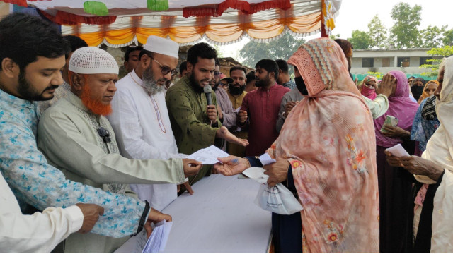 পবিত্র ঈদুল ফিতর-২০২৬ উপলক্ষে চাঁপাইনবাবগঞ্জ-৩ আসনের সংসদ সদস্য মোঃ নূরুল ইসলাম বুলবুলের পক্ষ থেকে আজ শুক্রবার। অসহায় ও দুস্থ মানুষের মাঝে ঈদ উপহার ও নগদ অর্থ বিতরণ করা হয়েছে। অনুষ্ঠানে সভাপতিত্ব করেন চাঁপাইনবাবগঞ্জ জেলা জামায়াতে ইসলামীর আমীর মাওলানা আবু গিফারী। প্রধান অতিথি হিসেবে উপস্থিত থেকে ঈদ উপহার ও নগদ অর্থ বিতরণ কার্যক্রমে অংশ নেন সংসদ সদস্য মোঃ নূরুল ইসলাম বুলবুল। এসময় তিনি বলেন, ঈদের আনন্দ সকলের মাঝে ভাগাভাগি করে নিতে সমাজের বিত্তবানদের এগিয়ে আসা উচিত। অসহায় মানুষের মুখে হাসি ফোটাতে এ ধরনের উদ্যোগ গুরুত্বপূর্ণ ভূমিকা রাখে। অনুষ্ঠানে বিশেষ অতিথি হিসেবে উপস্থিত ছিলেন জামায়াতে ইসলামীর কেন্দ্রীয় কর্মপরিষদের সদস্য ও সাবেক পৌরসভার মেয়র মোঃ নজরুল ইসলাম, চাঁপাইনবাবগঞ্জ সদর উপজেলার সাবেক চেয়ারম্যান মোঃ মোখলেশুর রহমান। এছাড়াও উপস্থিত ছিলেন জামায়াতের পৌর আমীর হাফেজ গোলাম রাব্বানী, পৌর জামায়াতের নায়েবে আমীর অ্যাডভোকেট শফিক এনাতুল্লাহ, পৌর জামায়াতের সেক্রেটারি তহরুল ইসলাম সোহেল, পৌর যুব জামায়াতের সভাপতি আবু তালেব এবং পৌরসভার ৬ নম্বর ওয়ার্ডের সভাপতি আব্দুল খালিদসহ অন্যান্য নেতৃবৃন্দ। উল্লেখ্য,প্রধানমন্ত্রীর ত্রাত তহবিল থেকে বরাদ্দকৃত ৭০০ পিছ শাড়ী চাঁপাইনবাবগঞ্জ সদর এলাকার সুবিধাবঞ্চিত মা-বোনদের মাঝে বিতরণ করেন ও প্রধানমন্ত্রীর দেওয়া ১০ লক্ষ টাকা ১০০০ জন দুস্থ অসহায় মানুষের ১০০০ টাকা নগদ অর্থ প্রদান করেন চাঁপাইনবাবগঞ্জ-৩ আসনের এমপি নূরুল ইসলাম বুলবুল। সদর উপজেলার ১৪ টি ইউনিয়ন ও পৌরসভার ১৫টি ওয়ার্ডের দরিদ্র, দুস্থ ও অসহায় মানুষের মাঝে এই ঈদ উপহার ও নগদ অর্থ বিতরণ করা হয়। এই মানবিক কার্যক্রমের মাধ্যমে ঈদ আনন্দ ছড়িয়ে দিতে গুরুত্বপূর্ণ ভূমিকা রাখছেন এমপি মোঃ নূরুল ইসলাম বুলবুল।
