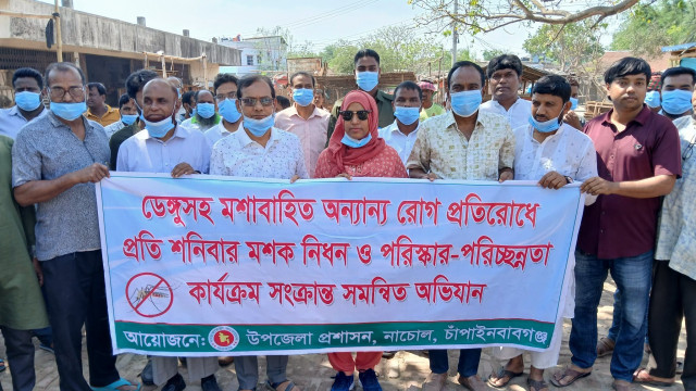 চাঁপাইনবাবগঞ্জের নাচোলে ডেঙ্গুসহ মশাবাহিত রোগ প্রতিরোধে সমন্বিত পরিষ্কার-পরিচ্ছন্নতা ও মশা নিধন অভিযান পরিচালিত হয়েছে। শনিবার (৪ এপ্রিল) সকালে নাচোল মধ্য বাজার এলাকায় সরকারি কর্মসূচির অংশ হিসেবে এই বিশেষ অভিযান চালানো হয়।