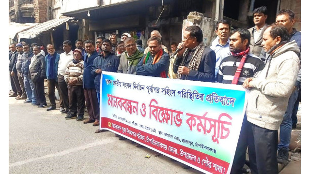 দ্বাদশ জাতীয় সংসদ নির্বাচন পরবর্তী হিন্দু সম্প্রদায়দের বাড়িতে হামলাসহ দেশের বিভিন্ন স্থানে সহিংস ঘটনার মদদদাতাদের গ্রেফতার করে দৃষ্টান্তমূলক শাস্তির দাবিতে কেন্দ্রীয় কর্মসূচীর অংশ হিসেবে চাঁপাইনবাবগঞ্জে মানববন্ধন অনুষ্ঠিত হয়।