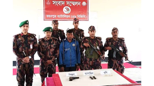 চাঁপাইনবাবগঞ্জের শিবগঞ্জে ৫৯ বিজিবি সদস্যরা অভিযান চালিয়ে ১ টি বিদেশী পিস্তল, ৬ রাউন্ড গুলি ও ২ টি ম্যাগজিনসহ রুপচান রনি ((৩৫) নামে একজনকে আটক করেছে।
