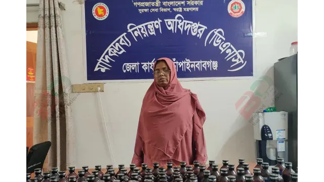 চাঁপাইনবাবগঞ্জের নাচোলে ৭৫ বোতল ফেন্সিডিলসহ মালেকা বেগম (৫৫) নামে জয়পুরহাটের নারী মাদক ব্যবসায়ী কে আটক করেছে মাদকদ্রব্য নিয়ন্ত্রণ অধিদপ্তর-ডিএনসি।