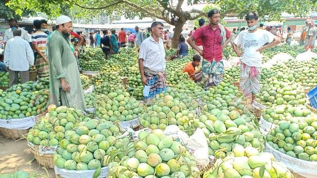 জেলার বাইরের পাইকাররা আসতে না পারা, অনলাইনে অর্ডার বন্ধ থাকায় আম বেচাকেনা কমে যায়। বাগানেই আম পেকে নষ্ট হচ্ছে। ক্ষতি এড়াতে চাষিরা গাছ থেকে আম পাড়লেও স্থানীয় বাজারে বিক্রি করতে হচ্ছে কম দামে। জেলা কৃষি সম্প্রসারণ অধিদপ্তরের উপ-পরিচালক ড. পলাশ সরকার জানান এখনো গাছে ৪০ শতাংশ আম রয়েছে।