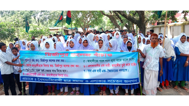 চাঁপাইনবাবগঞ্জের নাচোলে মির্জাপুর কলেজের অধ্যক্ষের পদত্যাগের দাবিতে এলাকার শিক্ষার্থী ও অভিভাবকগণ বিক্ষোভ কর্মসূচি পালন করেছেন। ১৯ আগস্ট সোমবার সকাল ১০টায় উপজেলার ফতেপুর ইউপির মির্জাপুর বাজারে মির্জাপুর কলেজের অধ্যক্ষ শেখ জাহাঙ্গীর আলমের স্বেচ্ছাচারিতা, অনিয়ম ও দূর্ণীতির অভিযোগে তার পদত্যাগের দাবিতে এক বিক্ষোভ কর্মসূচি পালন করেন শিক্ষার্থী, অভিভাবক ও স্থানীয় সচেতন নাগরিকমহল। এ উপলক্ষে মির্জাপুর কলেজের অভিভাবক, ছাত্র-ছাত্রী ও স্থানীয়দের অংশগ্রহণে একটি বিক্ষোভ র্যালী মির্জাপুর বাজার প্রদক্ষিণ শেষে কলেজ চত্বরে মিলিত হয়। সেখানে কলেজের অধ্যক্ষ শেখ জাহাঙ্গীর আলম সাময়িক ছুটিতে থাকা অবস্থায় তাঁর অনিয়ম, দূর্ণীতি ও স্বেচ্ছাচারিতার ফিরিস্তি তুলে ধরে বক্তব্য রাখেন সচেতন নাগিরিকের পক্ষে কবির হোসেন, ওই কলেজের একাদ্বশ শ্রেণীর ছাত্র সোহাগ আলী, দ্বাদশ শ্রেণীর ছাত্র বিপ্লব, সাবেক ছাত্র ফরহাদ হোসেন ও ওয়াসিম আলী ও শিক্ষানুরাগী গোলাম মোস্তফা। বিক্ষোভ সমাবেশে কবির হোসেন জানান, অধ্যক্ষ শেখ জাহাঙ্গীর আলম স্বেচ্ছাচারিতার মাধ্যমে বিগত ২০২১ সালের চলমান বৈধ কমিটিকে গোপনে বাতিল দেখিয়ে তার মনগড়া কাগুজে পকেট কমিটি করে ততকালিন বোর্ড চেয়ারম্যানের নিকট থেকে বৈধ করে নেন। ওই কমিটির বৈধতা চ্যালেঞ্জ করে গত ১৫/০২/২০২১ তারিখে চাঁপাইনবাবগঞ্জের সহকারী জজ আদালতে(অপ্র-২৭/২০২১ নং)একটি রীট হয়। দীর্ঘ শুনানীর পর বিজ্ঞ আদালত গত ১৫/১২/২০২১ তারিখে ভারপ্রাপ্ত অধ্যক্ষ ও তার কার্যক্রম বিধি বহির্ভূত মর্মে আদেশ দেন। কিন্তু অধ্যক্ষ আদালতের আদেশ পাস কাটিয়ে তাঁর পকেট কমিটির মাধ্যমে কলেজের উন্নয়ন ফান্ডে টাকা জমা করার কথা বলে প্রায় ৮১ লাখ টাকার বিনিময়ে কলেজের ল্যাব সহকারি, ল্যাব এ্যাসিসটেন্ট (উদ্ভিদ বিজ্ঞান), ল্যাব এ্যাসিসটেন্ট(রসায়ন), ল্যাব এ্যাসিসটেন্ট(পদার্থ বিজ্ঞান) ও ল্যাব সহকারি পদে ৫ জনকে রাতারাতি নিয়োগ দেন। কিন্তু ওই টাকা কলেজের উন্নয়ন ফান্ডে জামা না করে সমস্ত টাকা অধ্যক্ষ আত্মসাত করেছেন। কলেজের নামে দানকৃত জমিতে ভবন নির্মান না করে অন্যের জমিতে কলেজ ভবন নির্মান, পরিত্যক্ত ভবনের ইট বিক্রি, আমগাছের বাৎসরিক লীজের টাকা ও শিক্ষকদের টাকায় ক্রয় করা ৬লাখ টাকা মূল্যের শিক্ষার্থী বহনের গাড়ি অবৈধভাবে বিক্রি করে টাকা আত্মস্বাতসহ বিভিন্ন অনিয়ম ধূর্ণীতির অভিযোগে অবিলম্বে তাঁর পদত্যাগের দাবী জানান অভিভাবক, শিক্ষার্থী ও স্থানীয় জনতা। এসময় শিক্ষার্থীদের দাবির প্রেক্ষিতে সাময়িক ভারপ্রাপ্ত অধ্যক্ষ আতাউর রহমান(ইসলামী শিক্ষা) তাঁর দায়িত্ব থেকে স্বেচ্ছায় পদত্যাগ করেন।