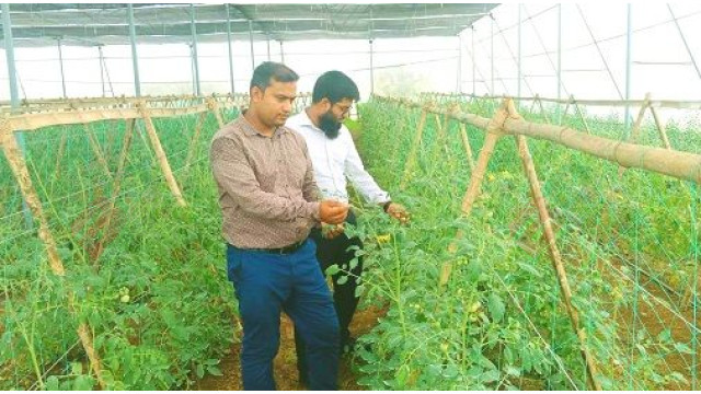 চাঁপাইনবাবগঞ্জের নাচোল উপজেলায় সফল কৃষি উদ্যোক্তা রফিকুল ইসলামের পলিনেট হাউজে উচ্চ ফলনশীল (বারী-৮) জাতের টমেটোসহ সবজি চাষে দৃষ্টান্ত স্থাপন করেছে।